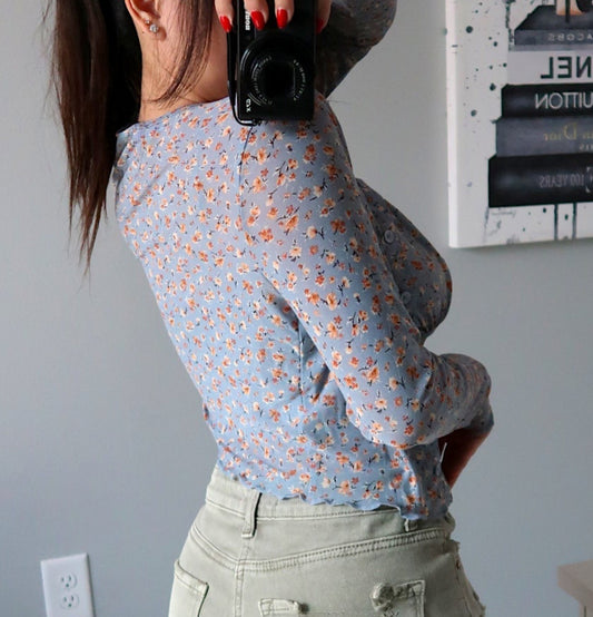 Mesh Floral Cardigan + Tank - Blue (Small)