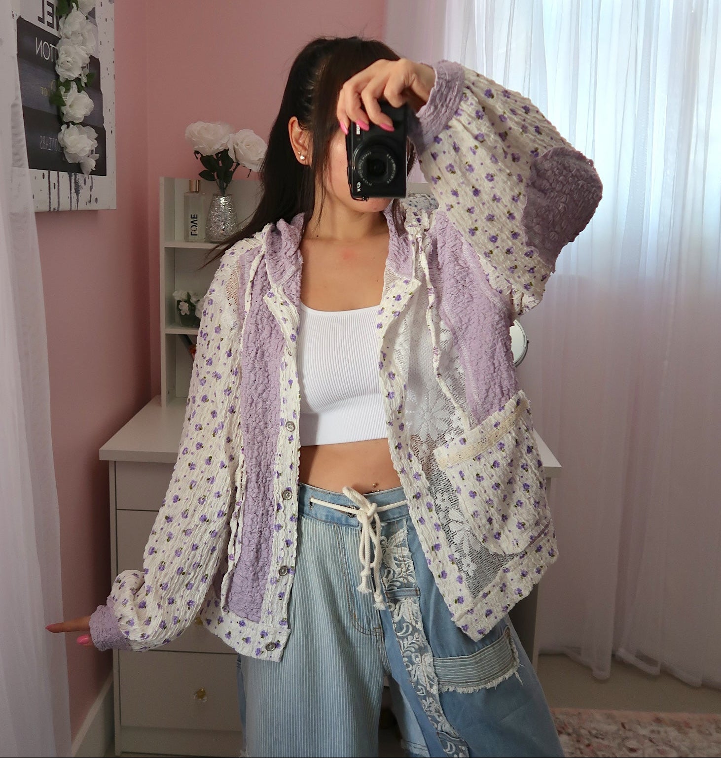 Lace and crinkle fabric details