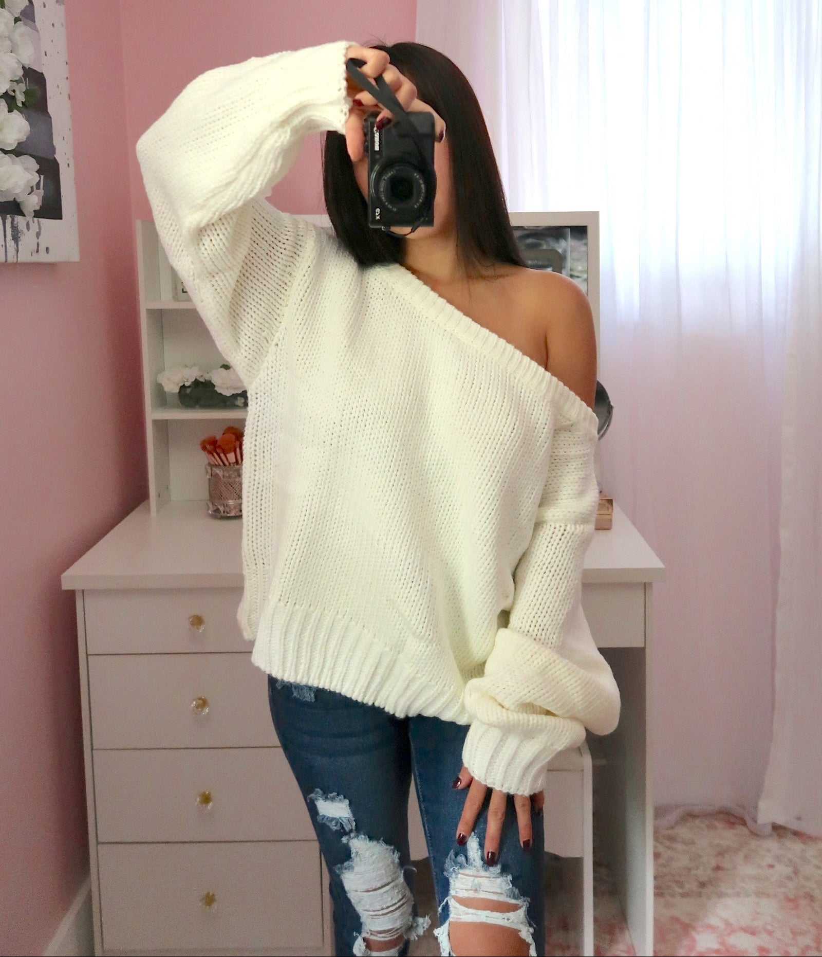 Off shoulder style sweater
